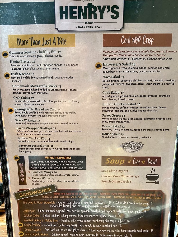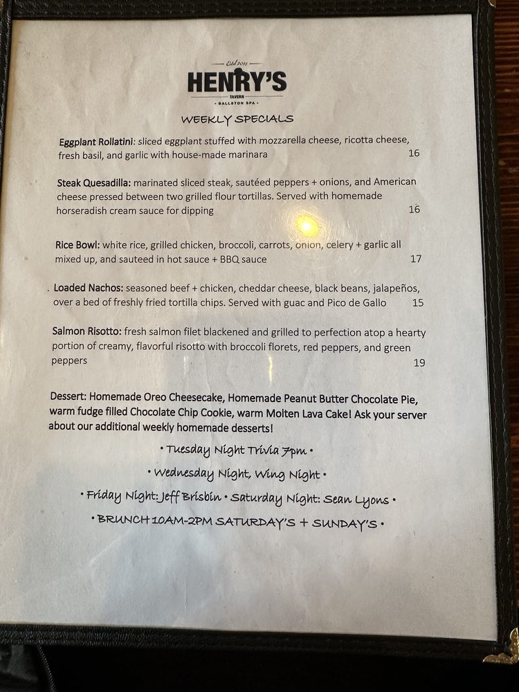 Welcome to Henry’s Tavern, a vibrant bar located at 19 Front St, Ballston Spa, NY. This lively spot stands out for its diverse menu and inviting atmosphere, making it a favorite among locals. From mouthwatering fish & chips to hearty Chicken Marsala and comforting Shepherd's Pie, every dish promises a delightful culinary experience.